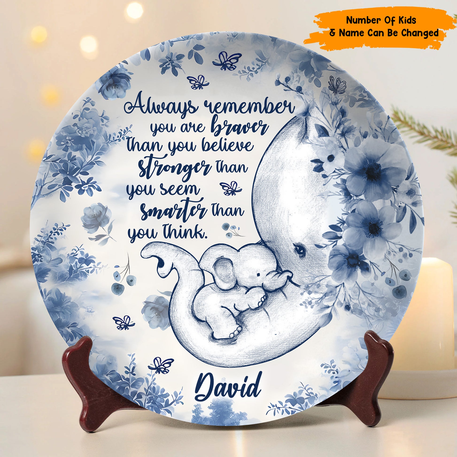 All Way Remember You Are Braver - Personalized Mother Elephant Ceramic Round Plate