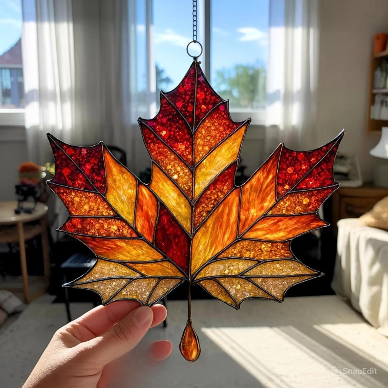 Autumn Maple Leaf Acrylic Window, Acrylic Window Hanging