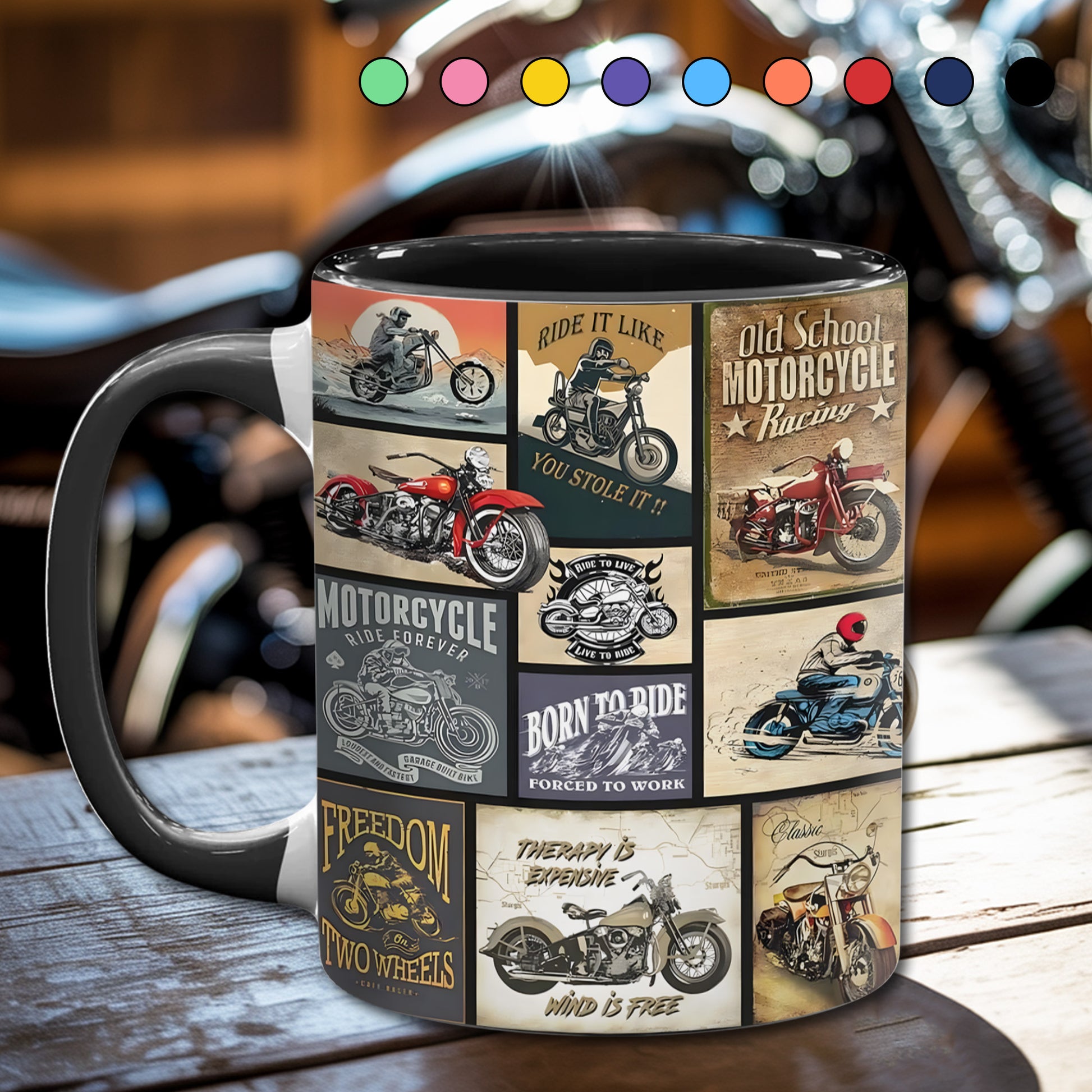 - High quality ceramic mug with two-tone rim, interior, & handle