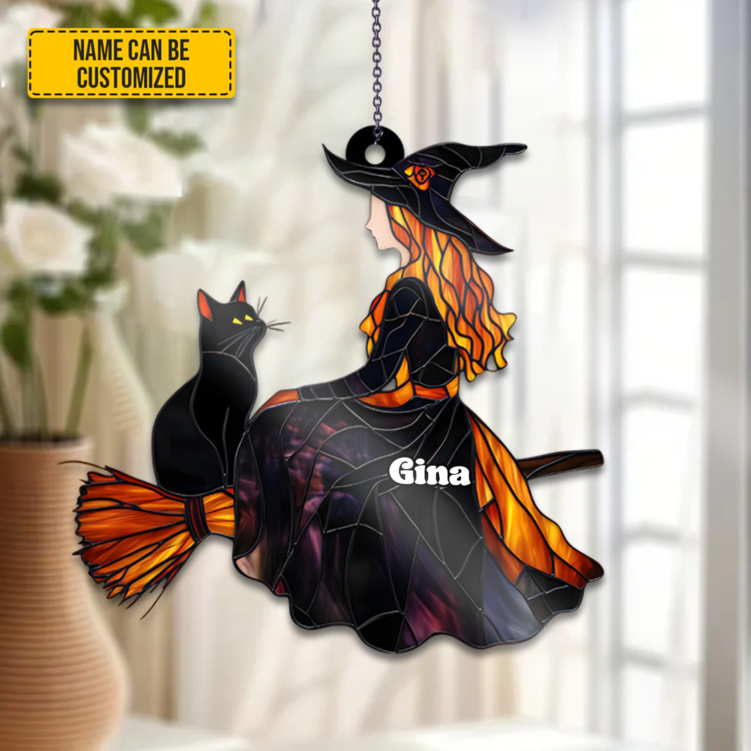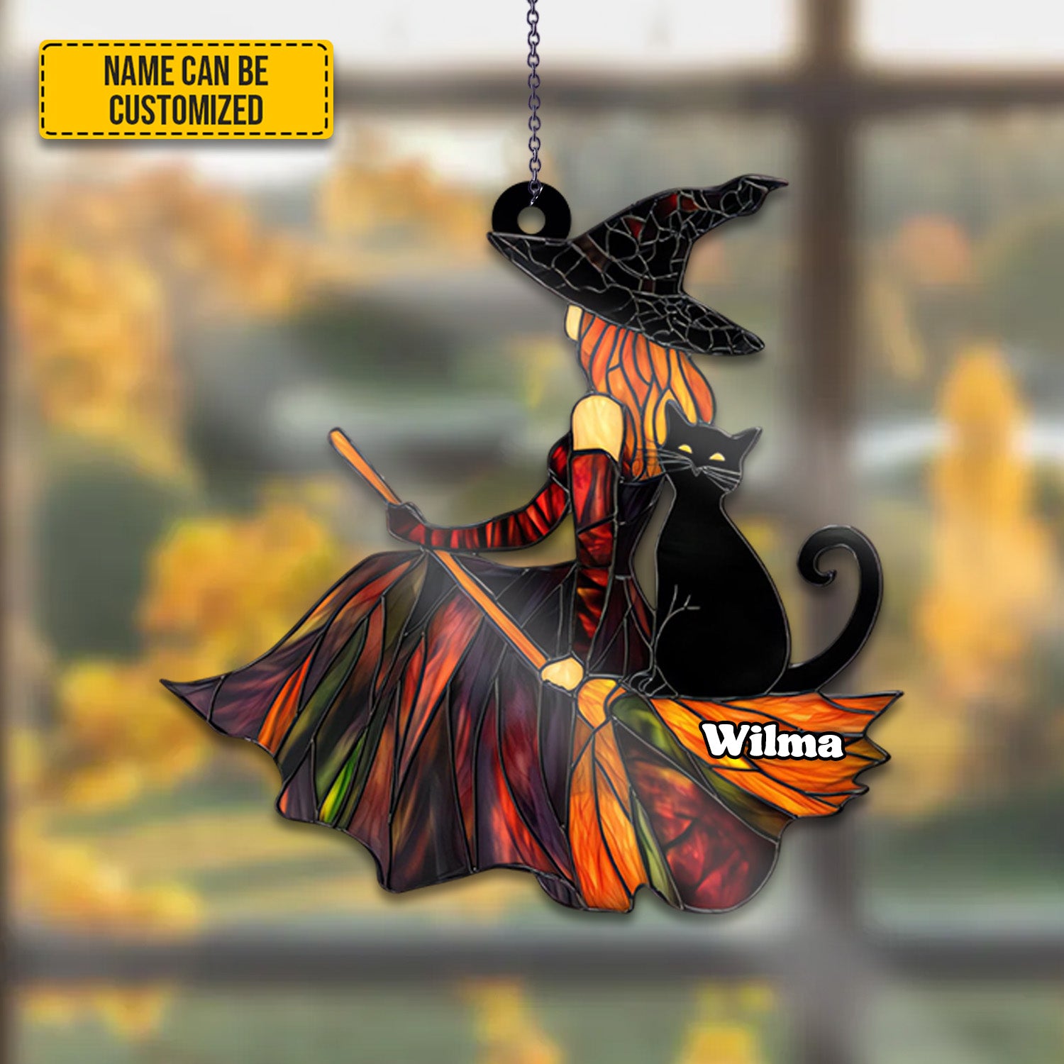Beautiful Witch With Black Cat - Personalized Witch Acrylic Window