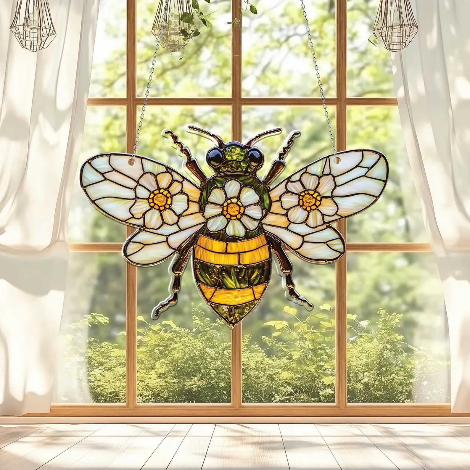 Bee Acrylic Window Suncatcher with Dried Flowers