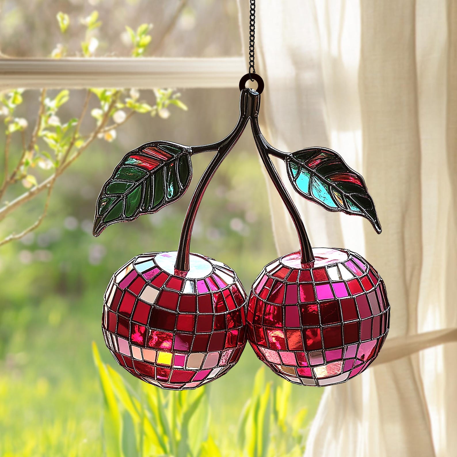 Cherry Disco Ball Suncatcher - Personalized Shape Stained Glass Suncatcher