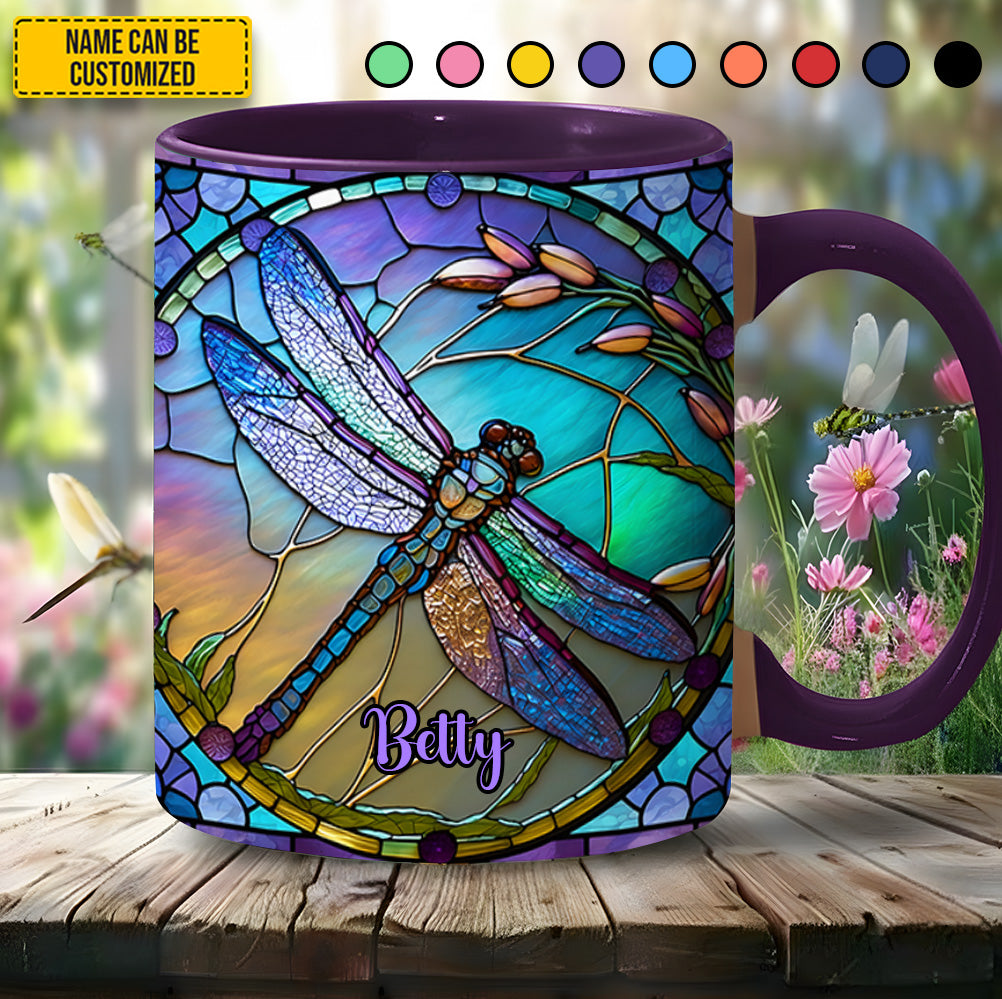 Colorful Stained Glass Dragonfly - Personalized Dragonfly Accent Mug