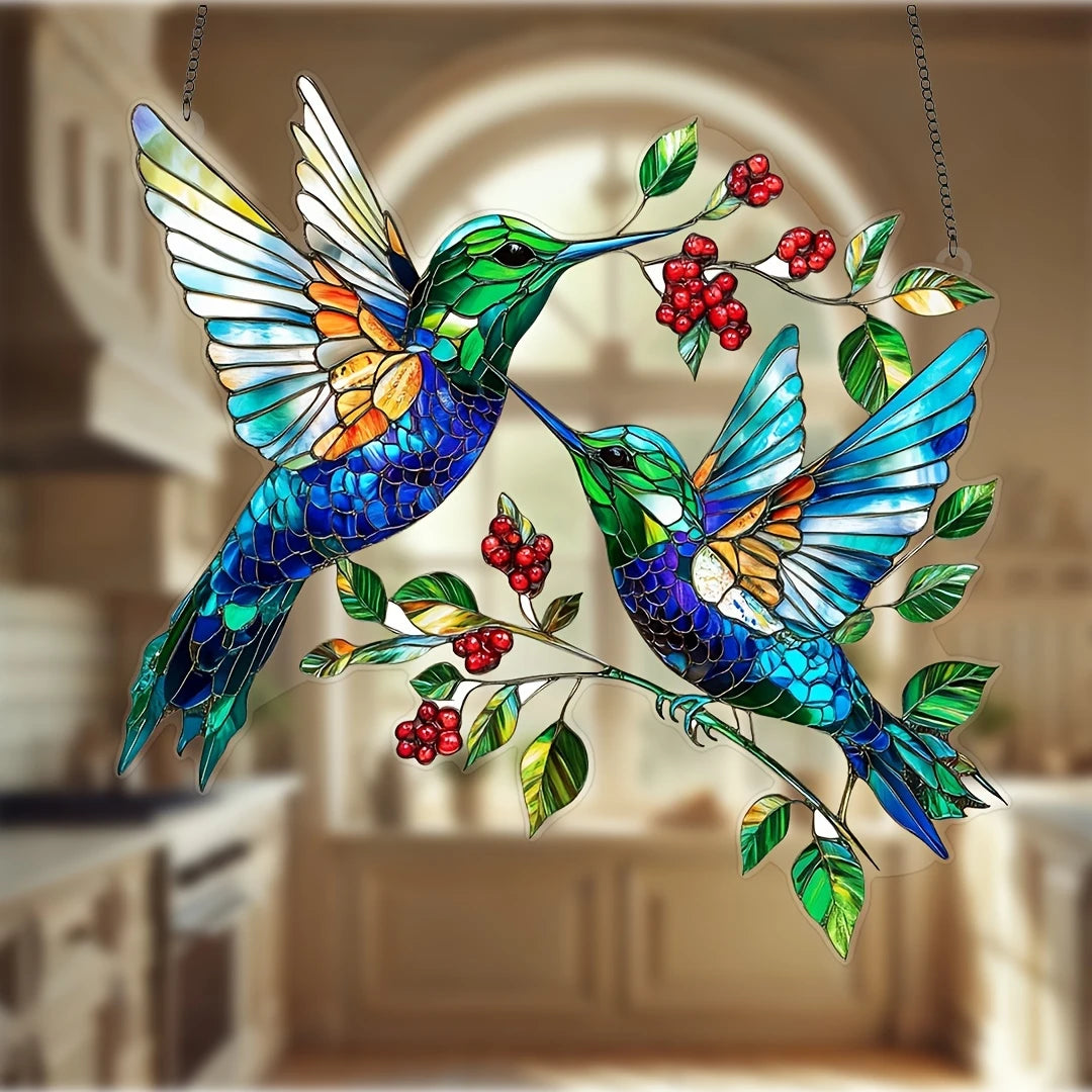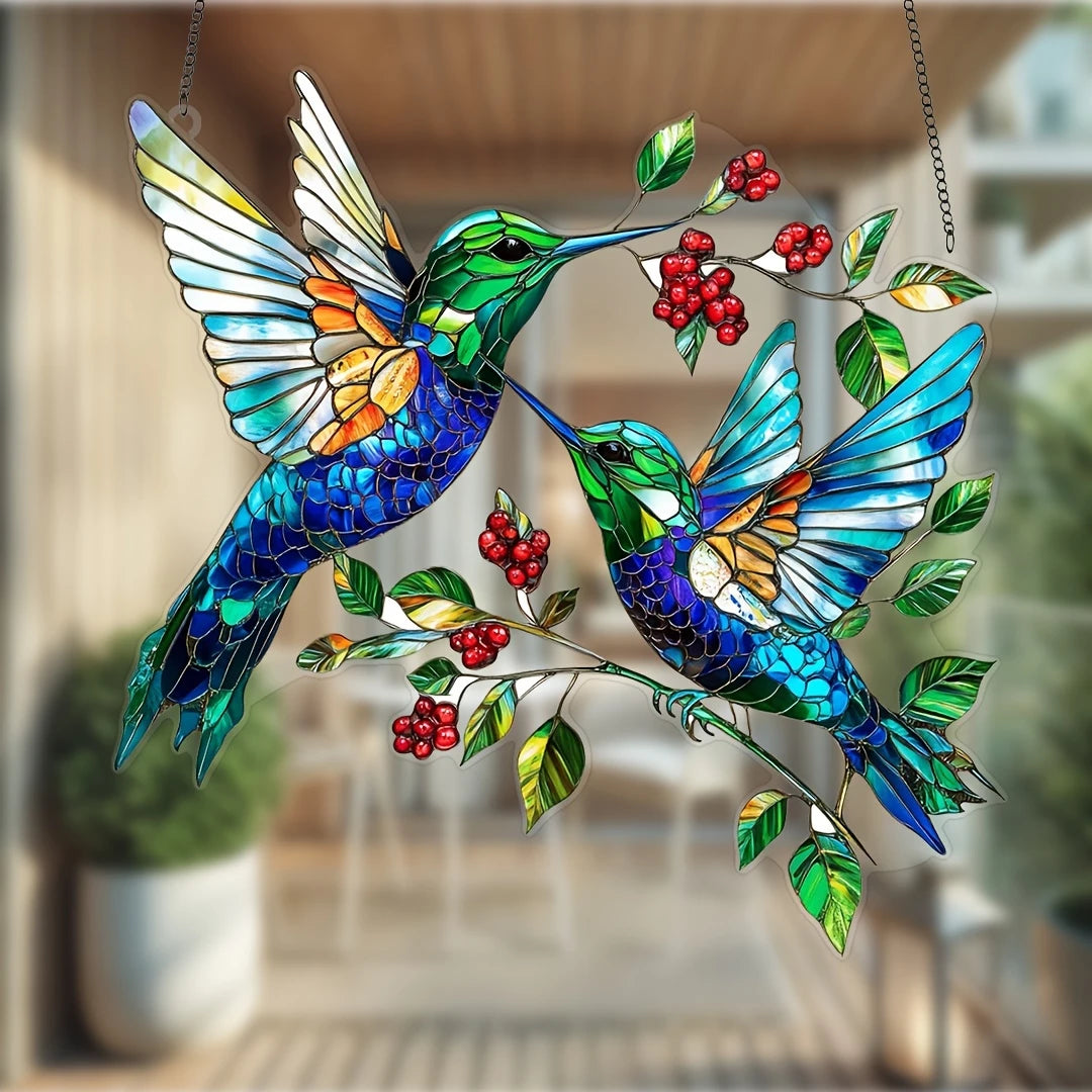 Couple Hummingbird Suncatcher - Beautiful Shape Stained Glass Suncatcher