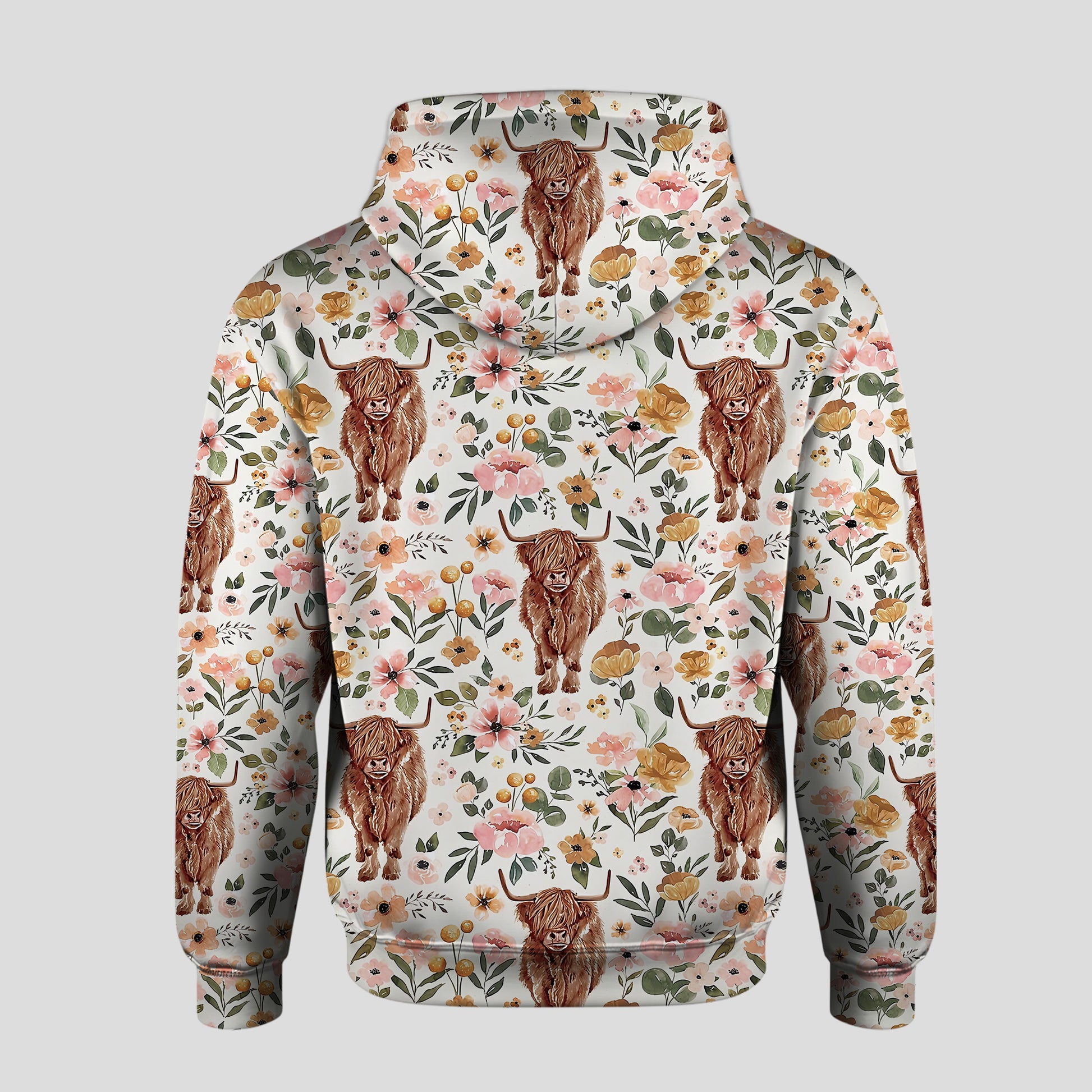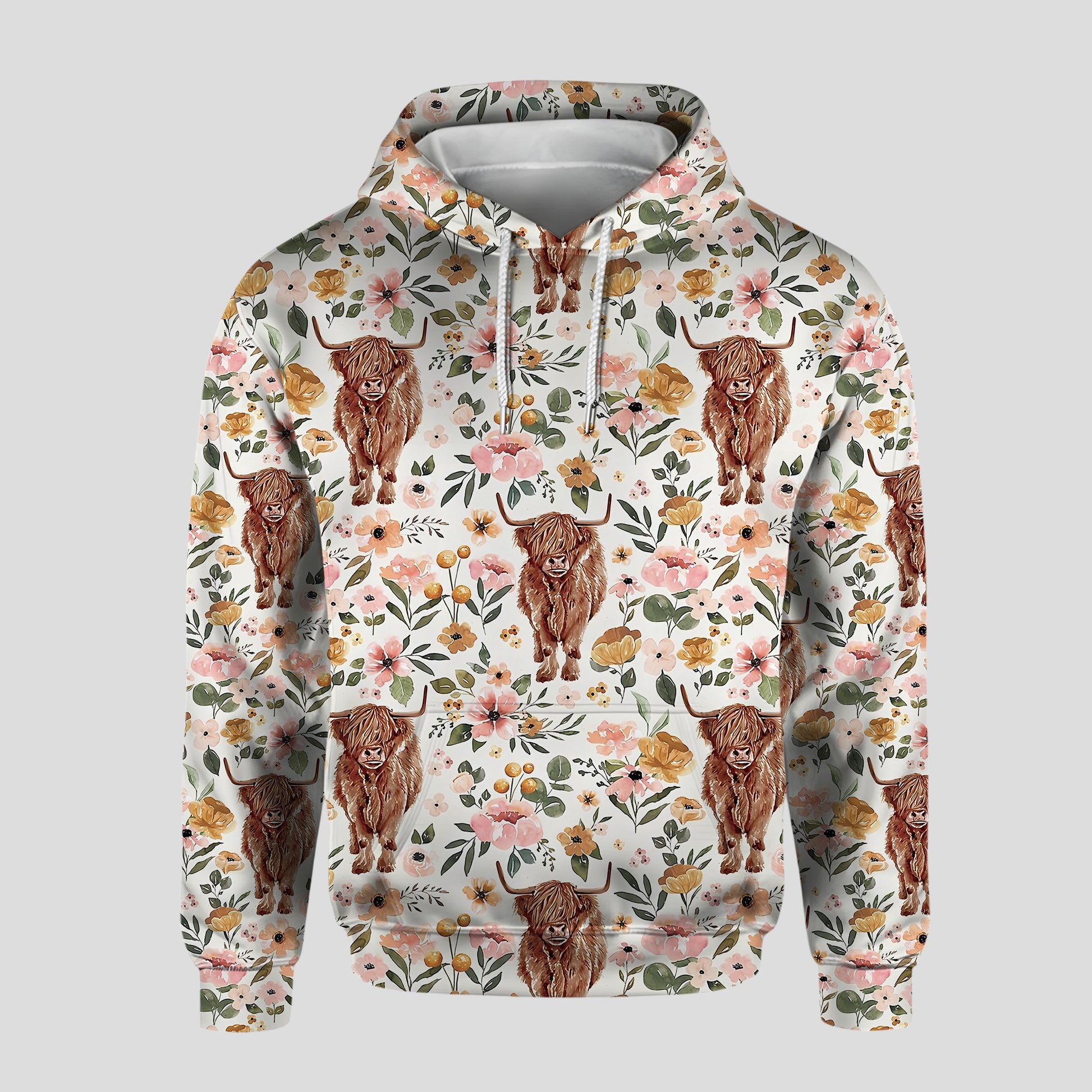 Highland Cow Flower - Personalized Highland Cow Hoodie and Leggings