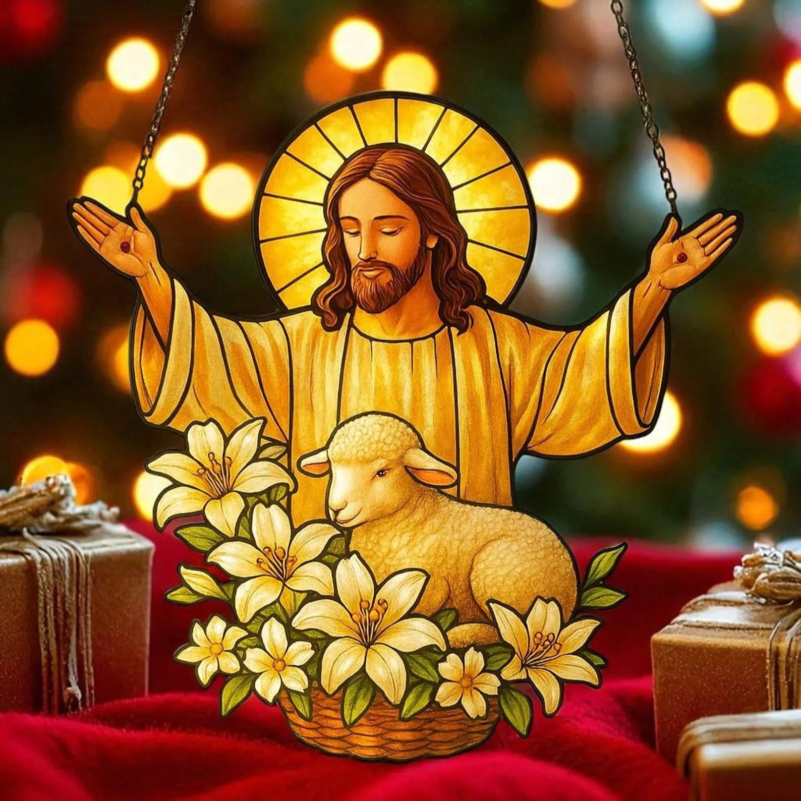 Lamb & Flowers Acrylic Window, Christian Home Decor