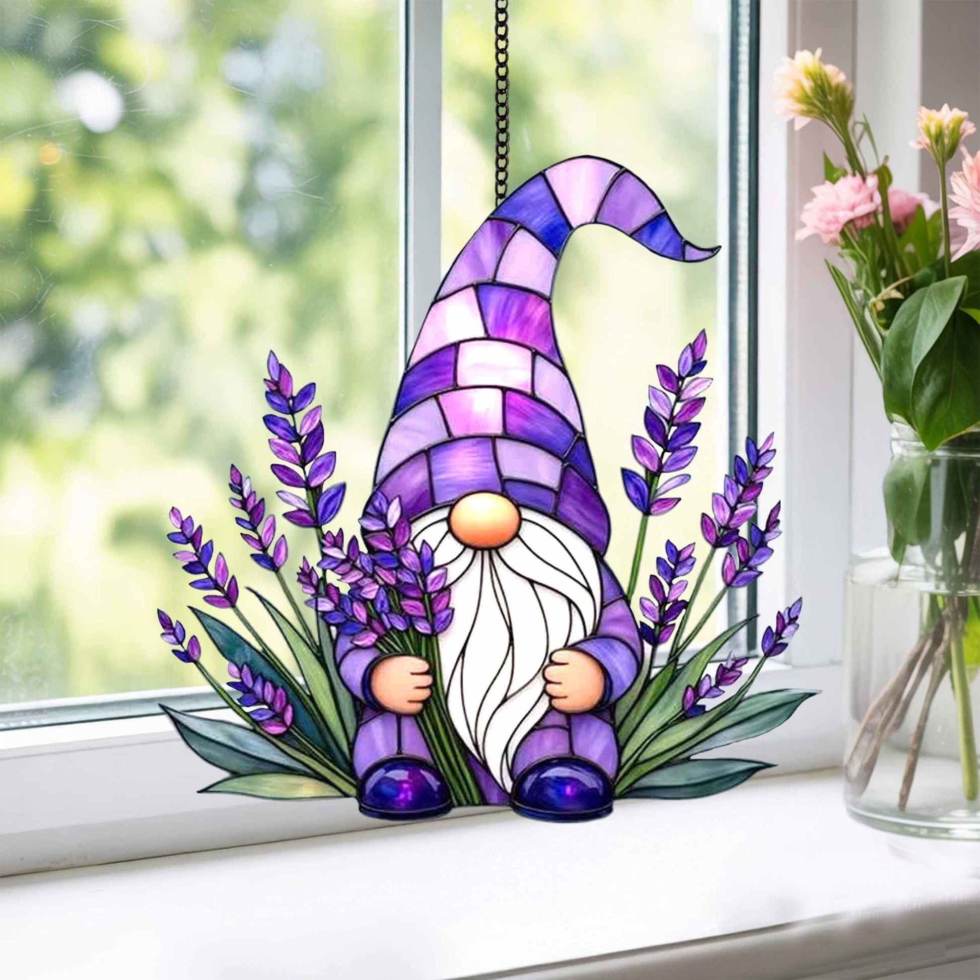 Lavender Gnome Acrylic Window, Hangging Home Decor