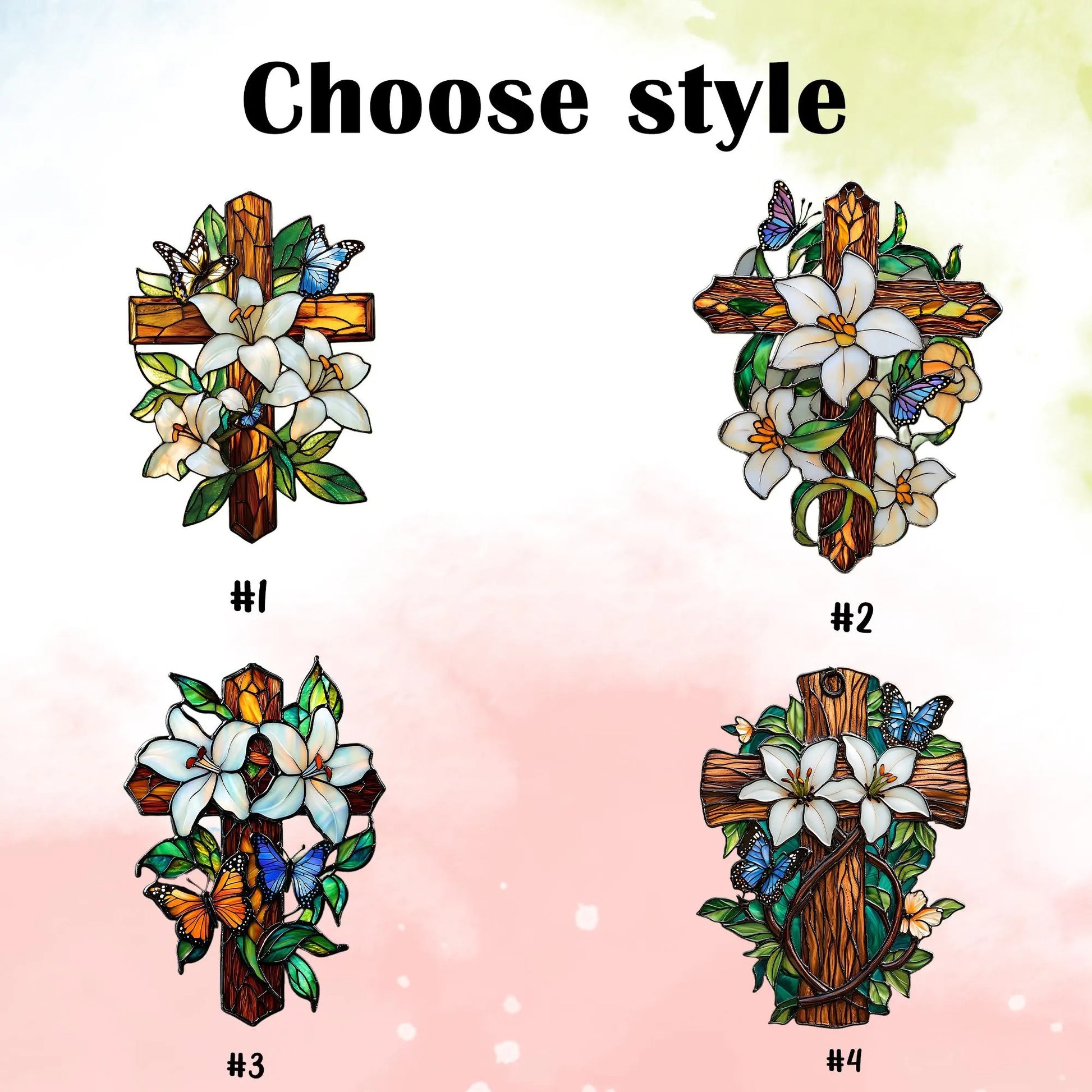 Lily & Butterfly Cross Acrylic Window, Christian Acrylic Window Hanging