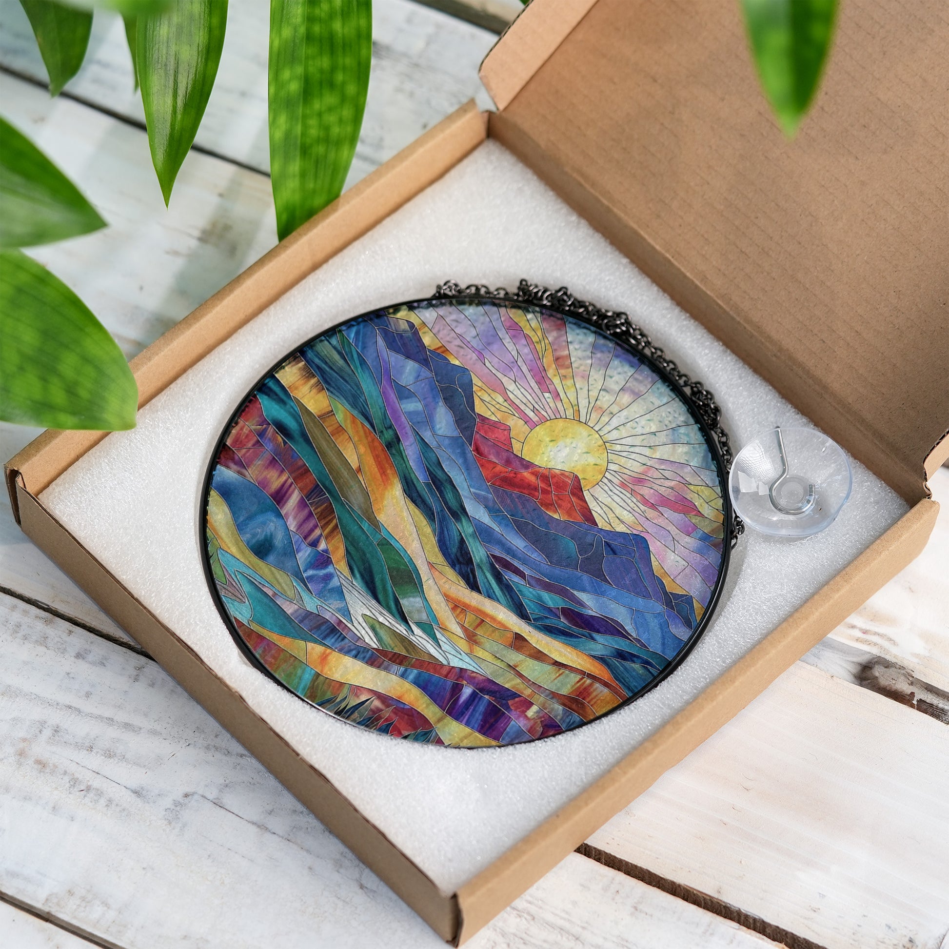 Mountain Sunrise Stained Glass Suncatcher