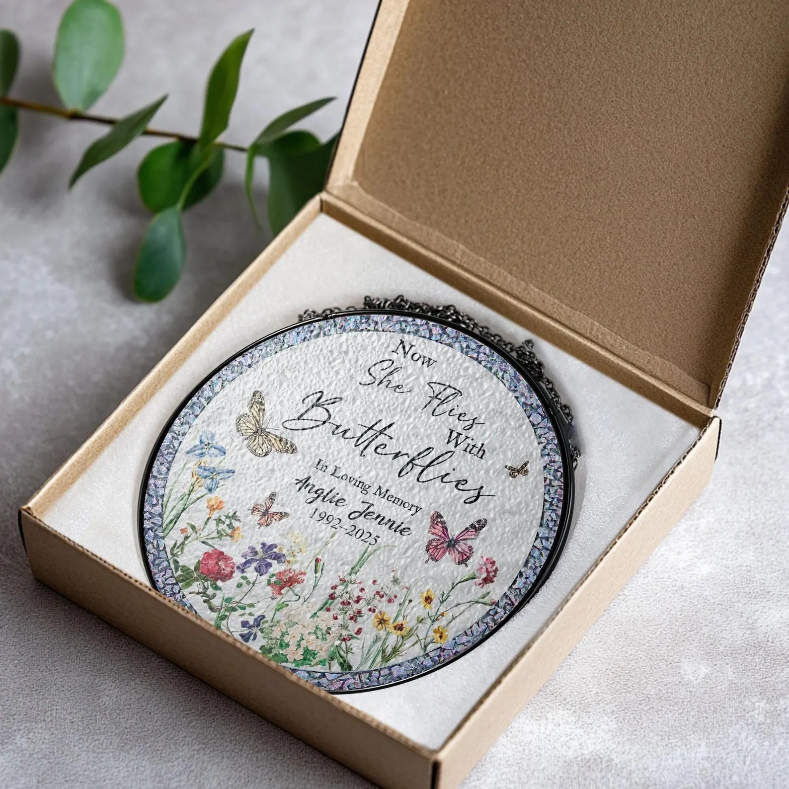 Now She Flies With Butterflies Memorial Stained Glass Suncatcher