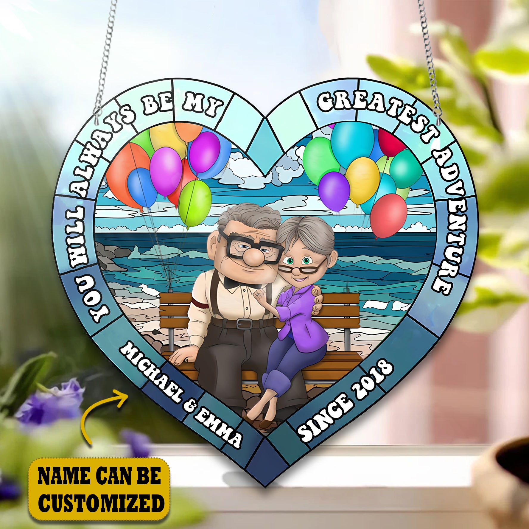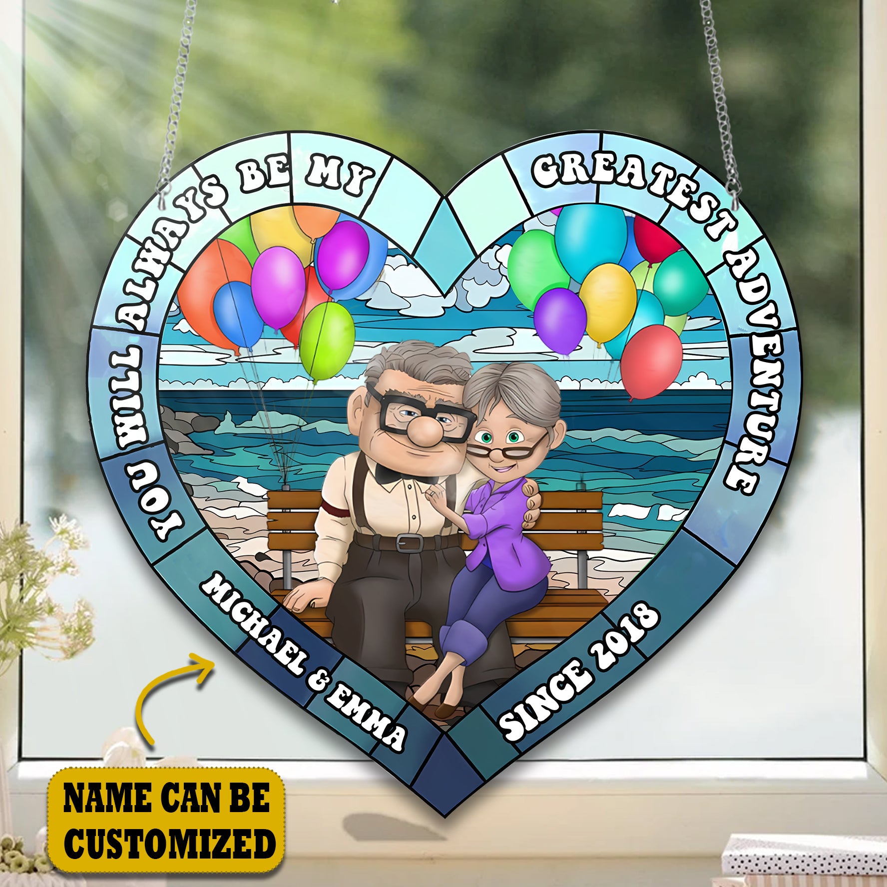 Old Couple Acrylic Window, Couple Acrylic Window Hanging