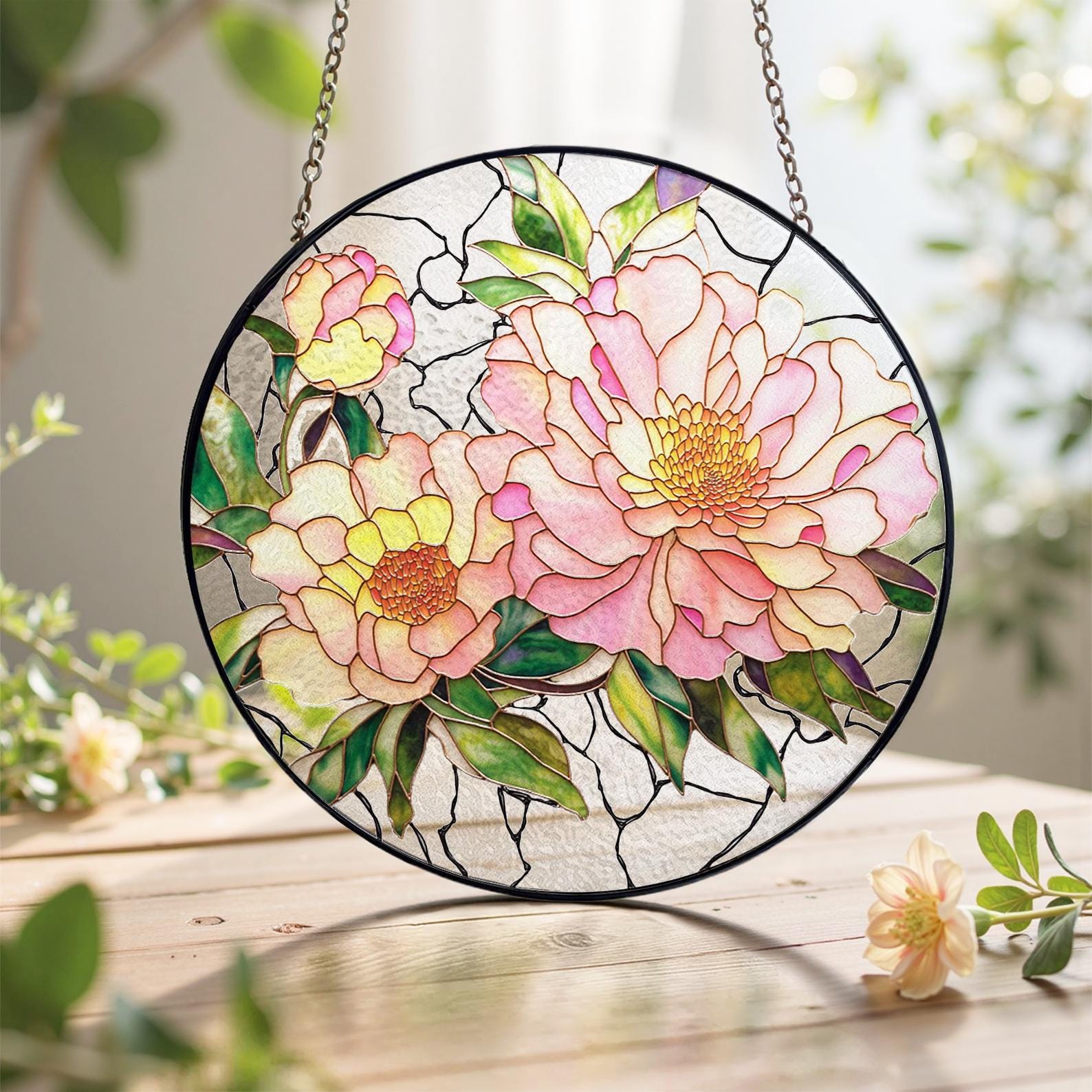 Peony Flower Stained Glass Suncatcher - Home Decor