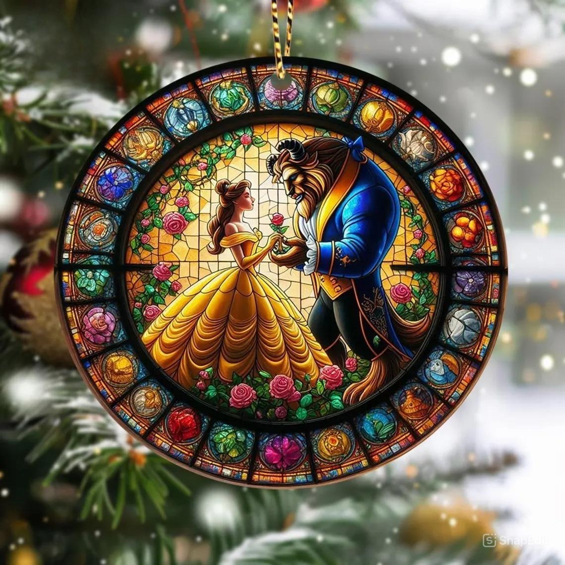 Personalized Beauty Couple Stained Glass Suncatcher, Hanging Decor