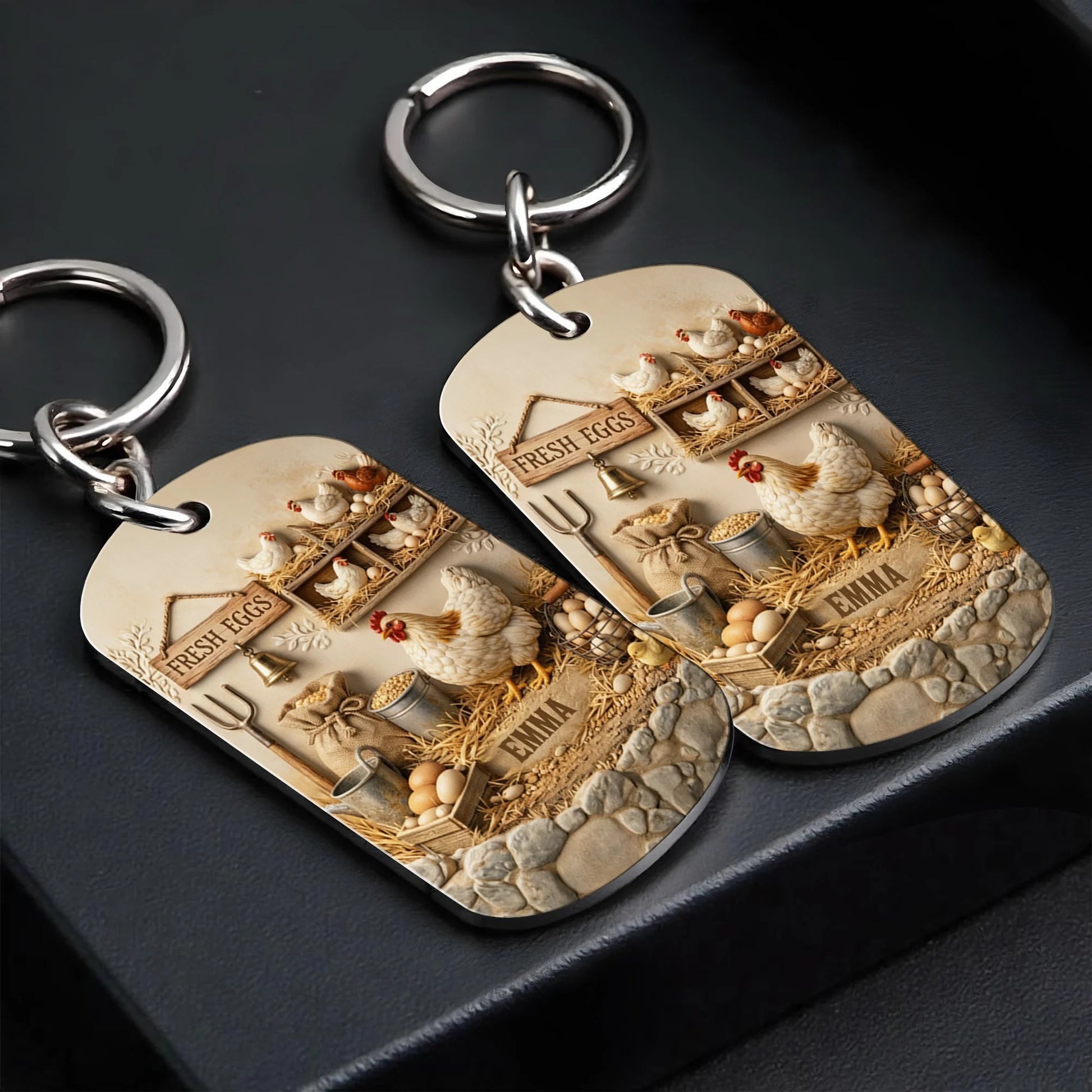 Personalized Chicken Fresh Eggs Keychain