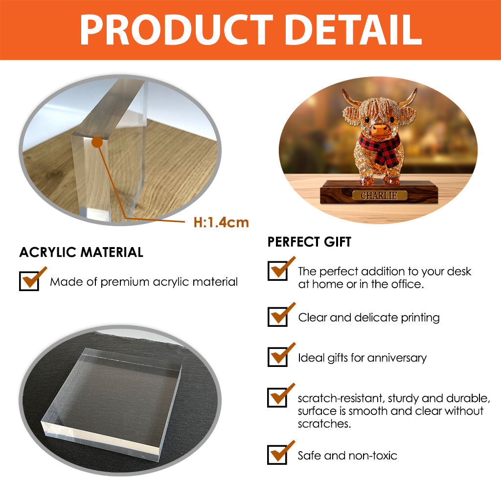 Personalized Cute Highland Cow Custom Shaped Acrylic Plaque