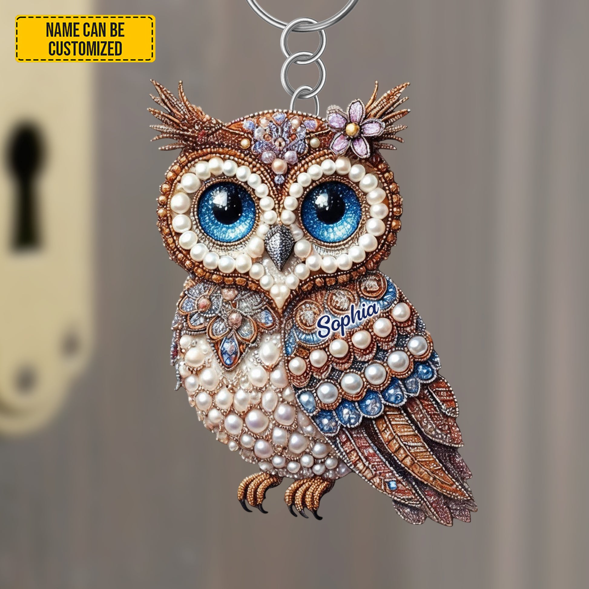 Personalized Cute Sparkle Owl Keychain