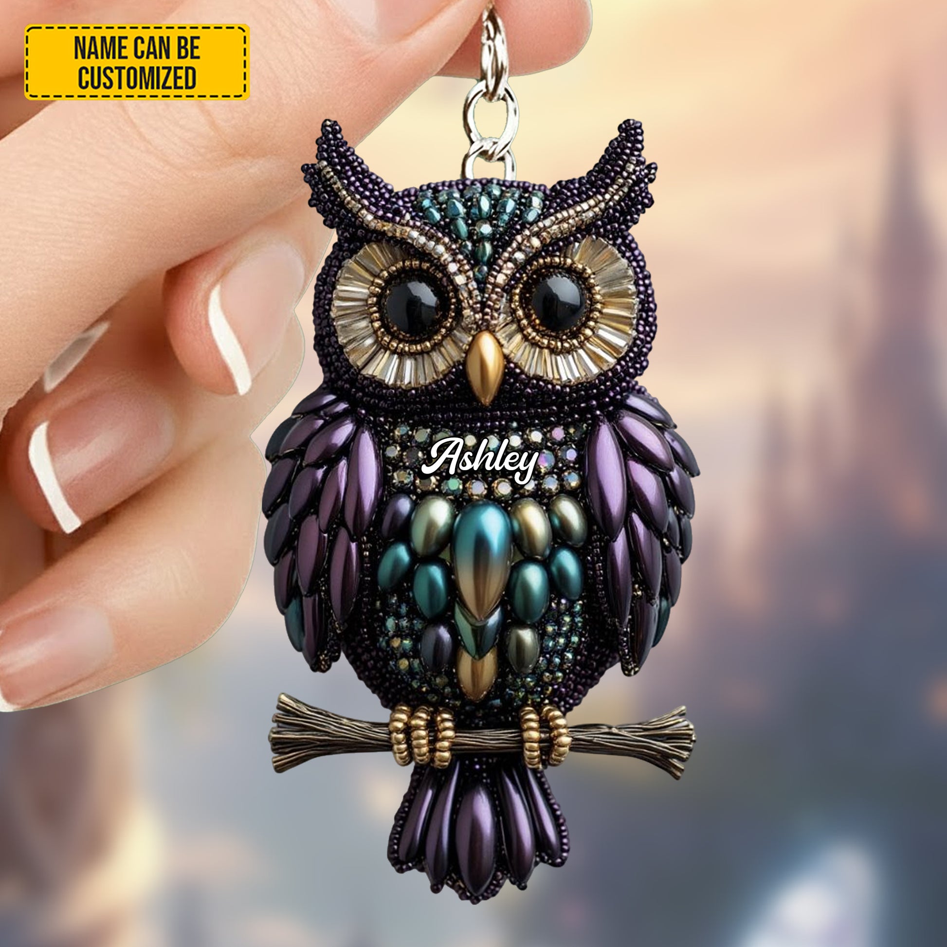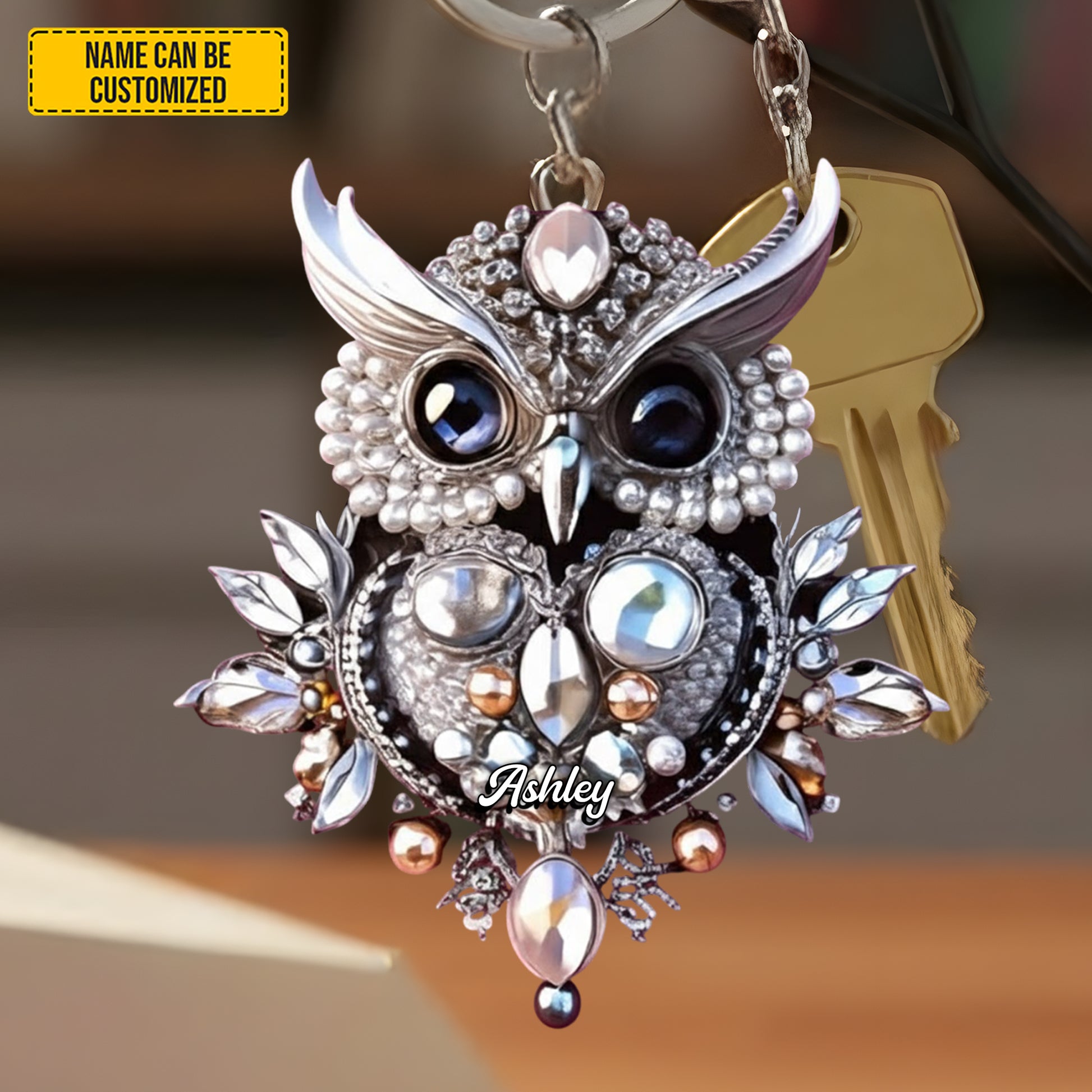 Personalized Cute Sparkle Owl Keychain