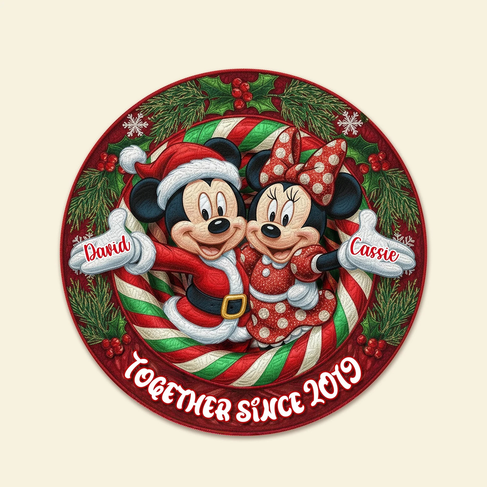 Personalized Gifts For Christmas, Lovely Couple Personalized Quilted Round Mat