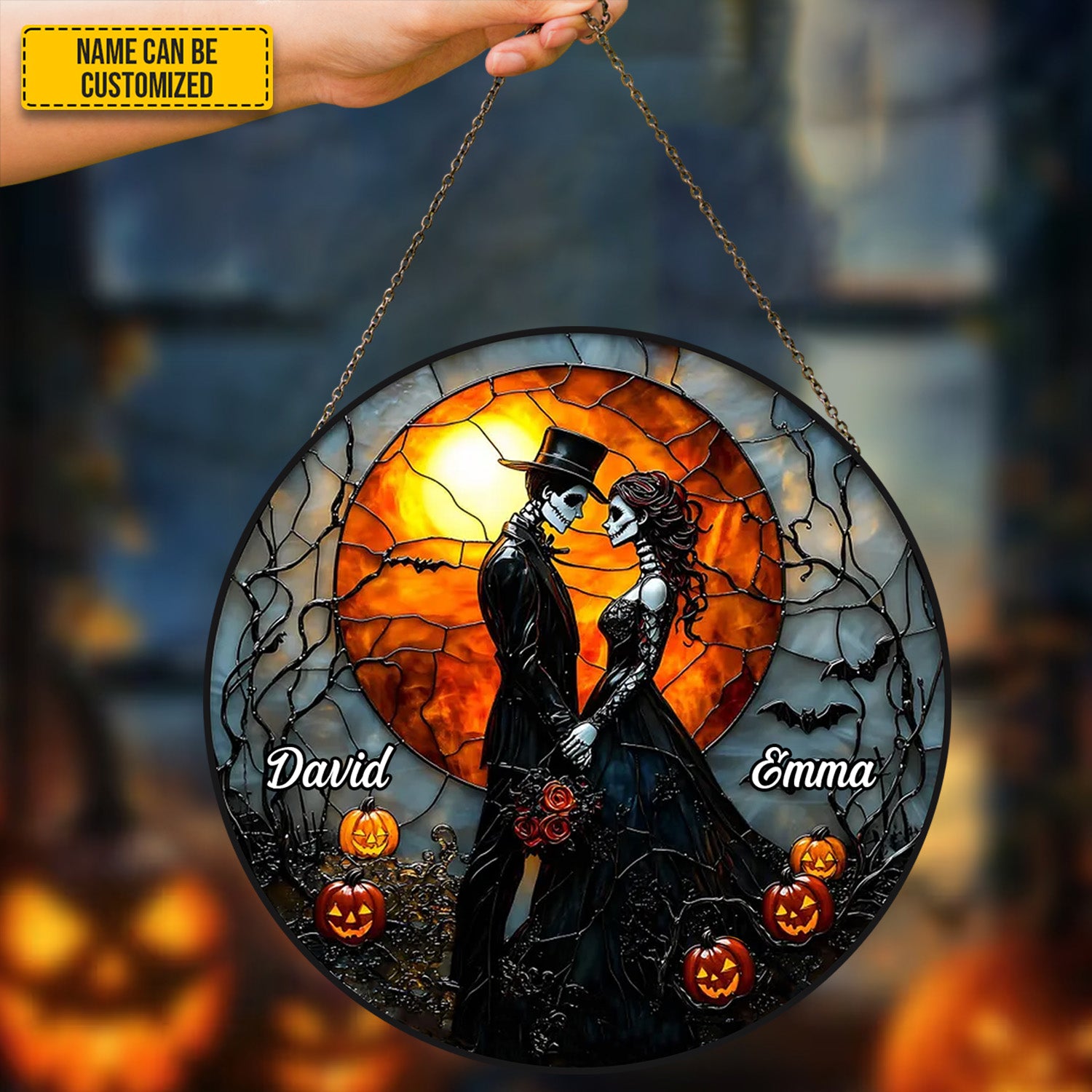 Personalized Gothic Skull Couple Stained Glass Suncatcher