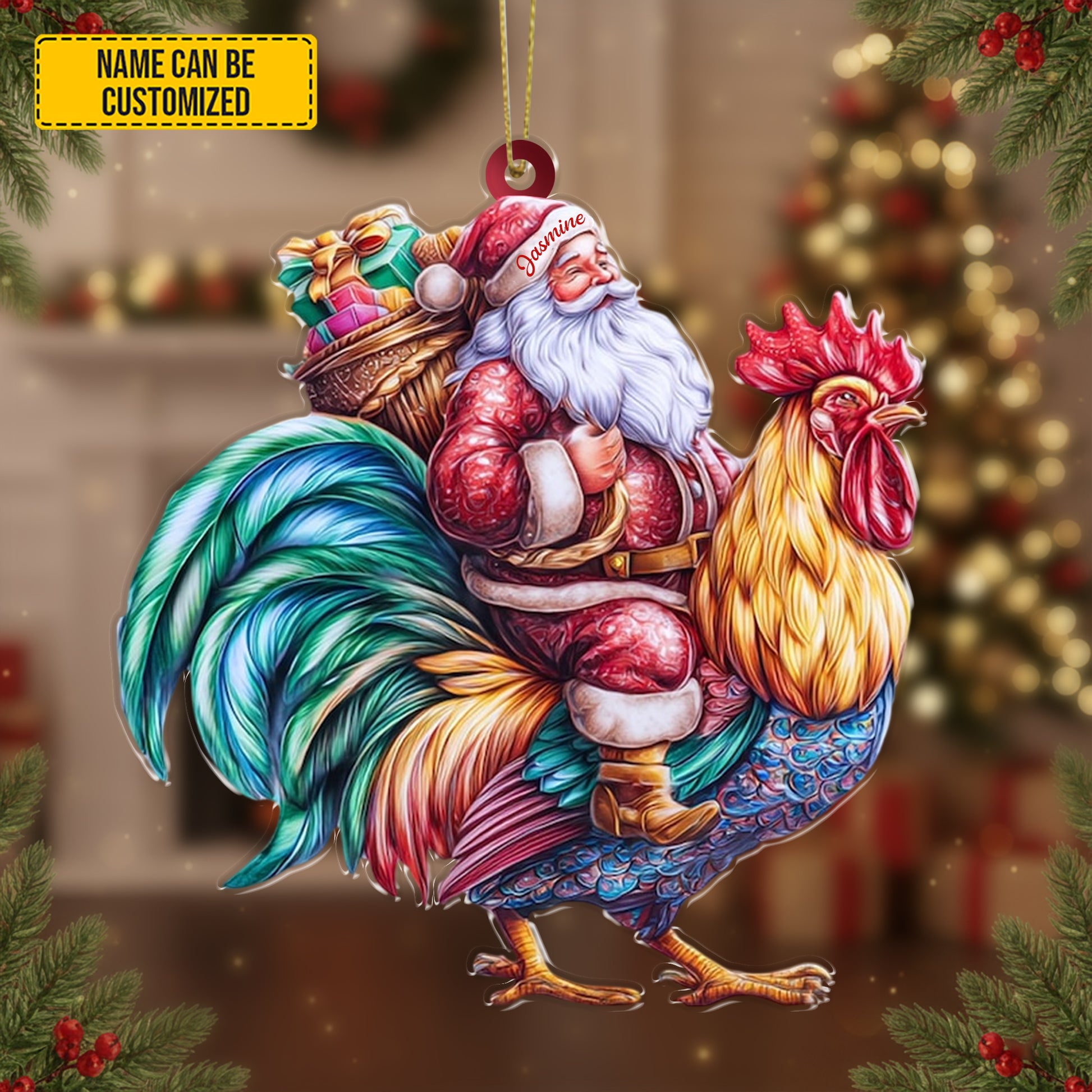 Personalized Santa Riding Rooster Christmas Ornament
