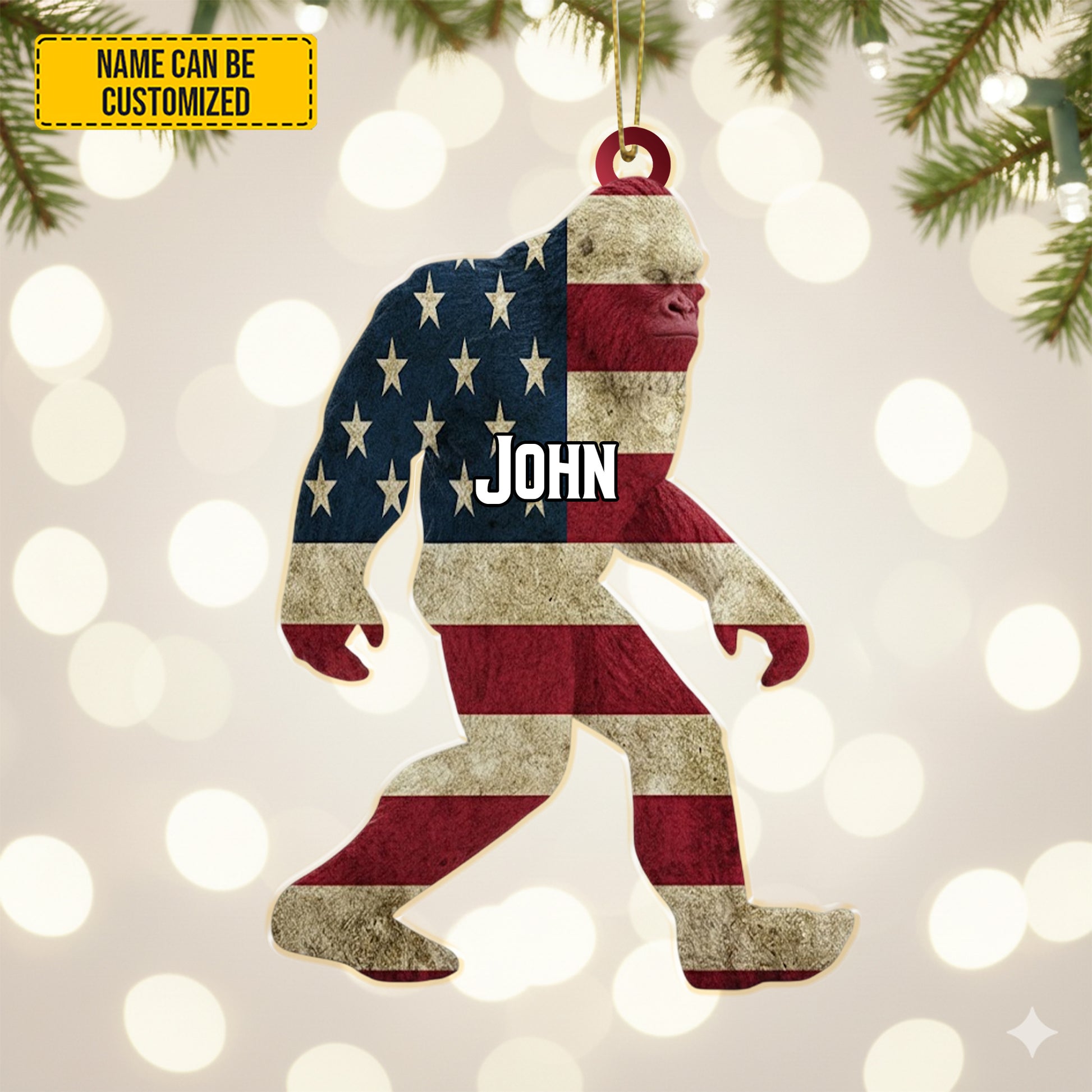 Personalized Sasquatch USA Flag Christmas – Funny Christmas Ornament