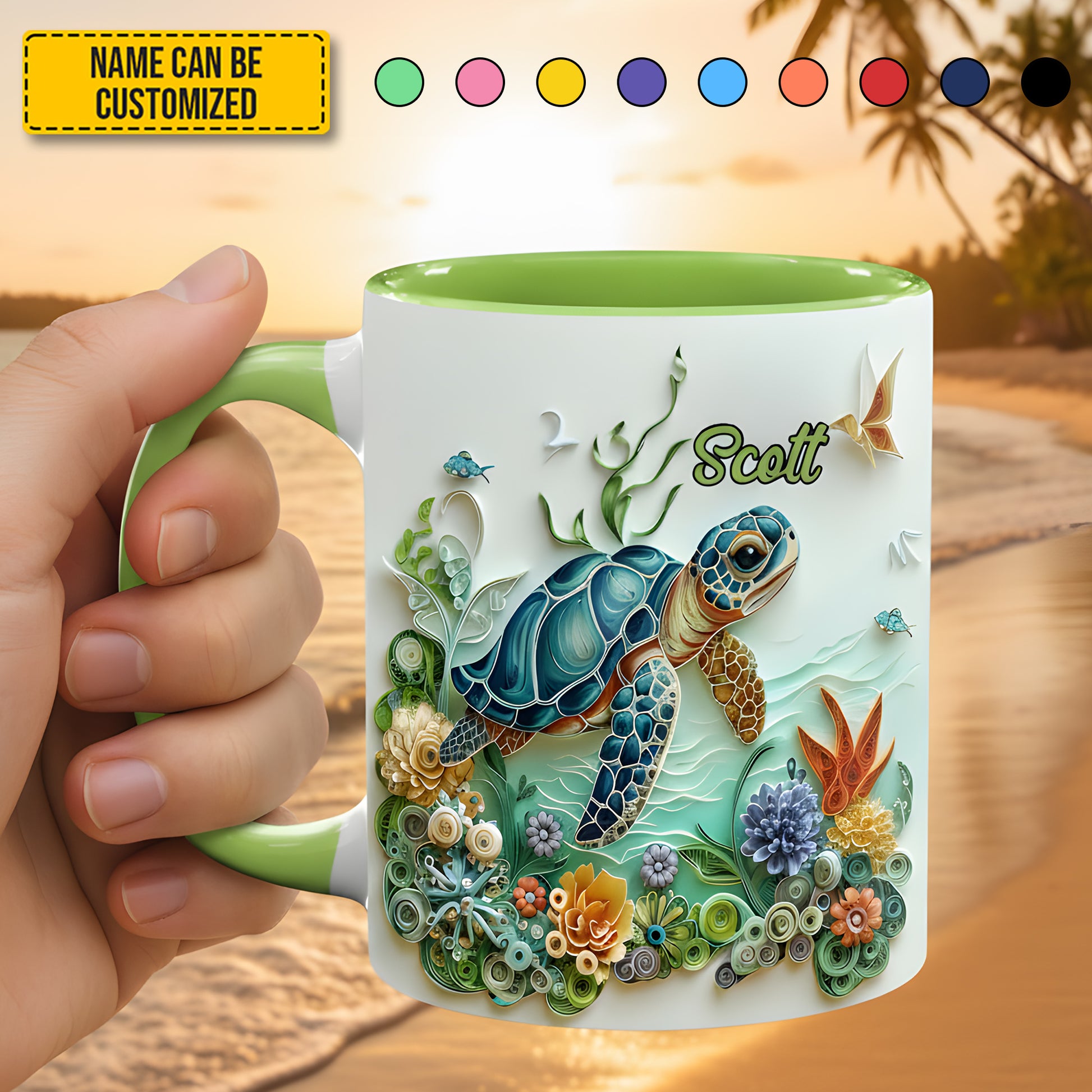 - High-quality ceramic mug with two-tone rim, interior, & handle