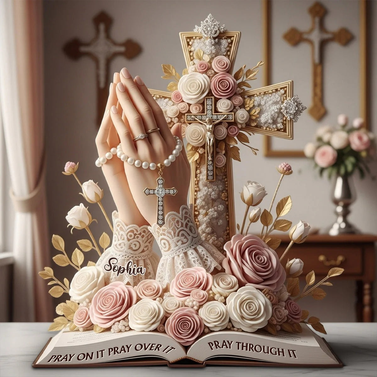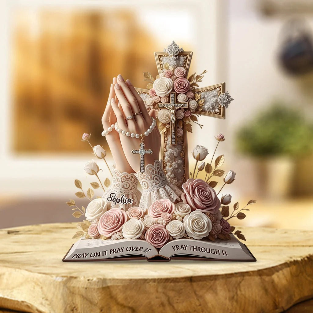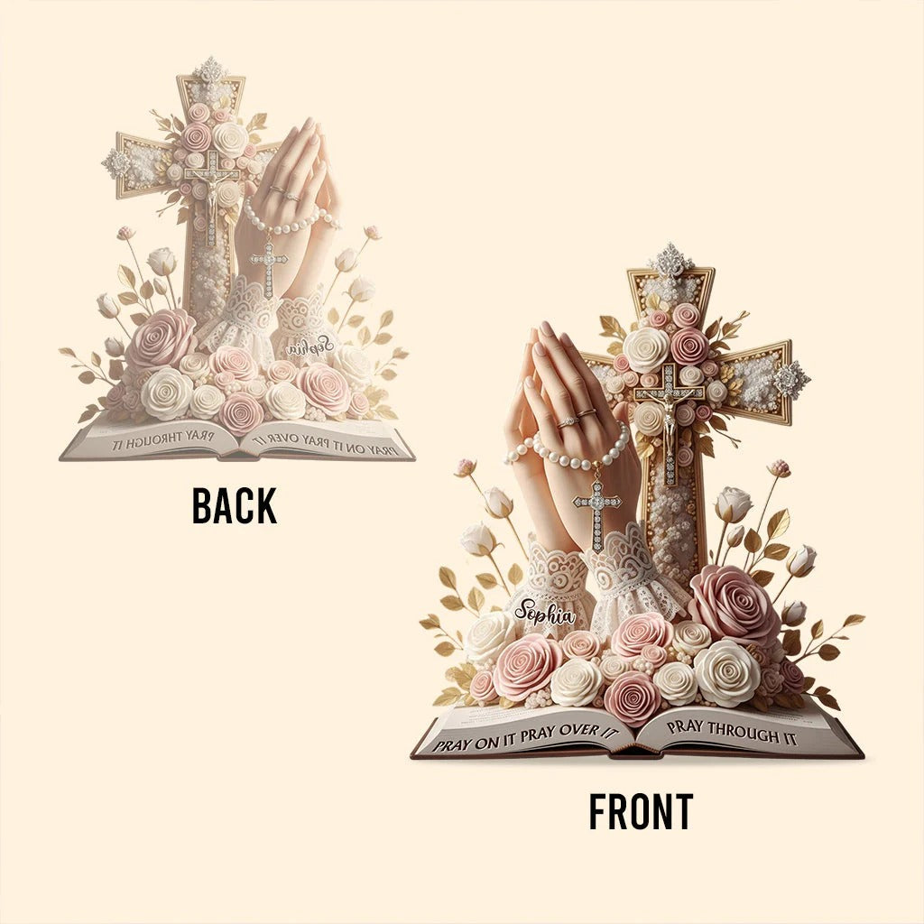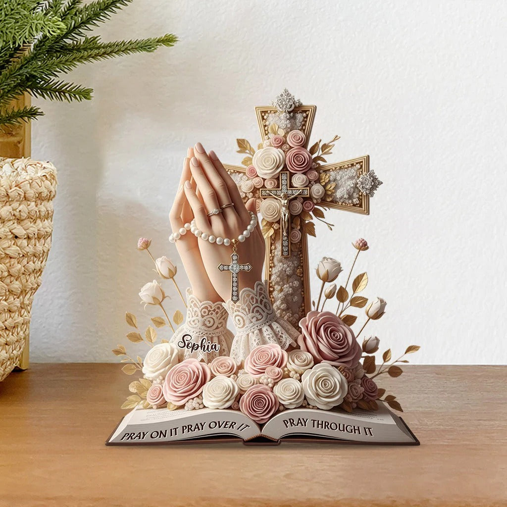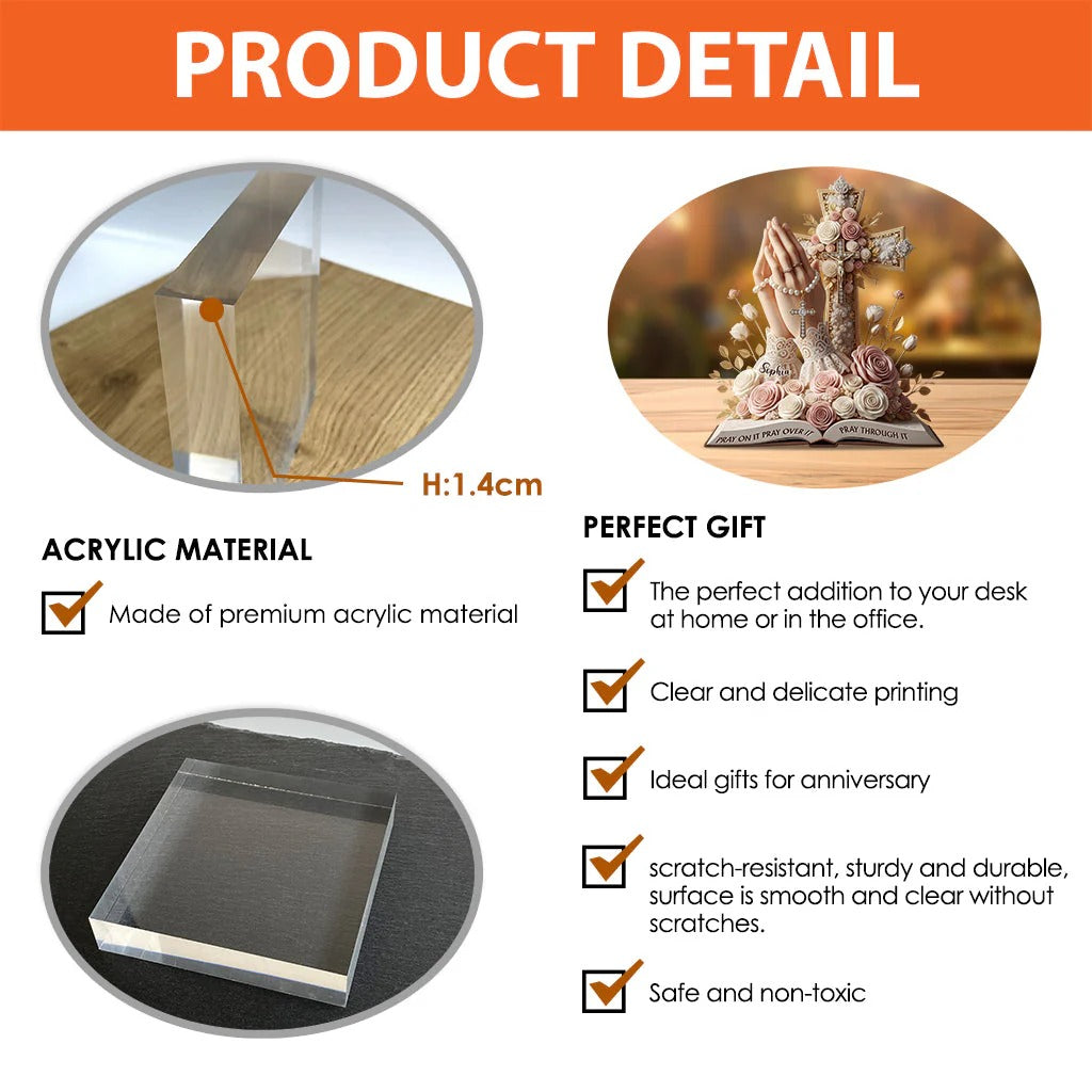 Pray On It Pray Over It Pray Through It - Personalized Christian Acrylic Plaque
