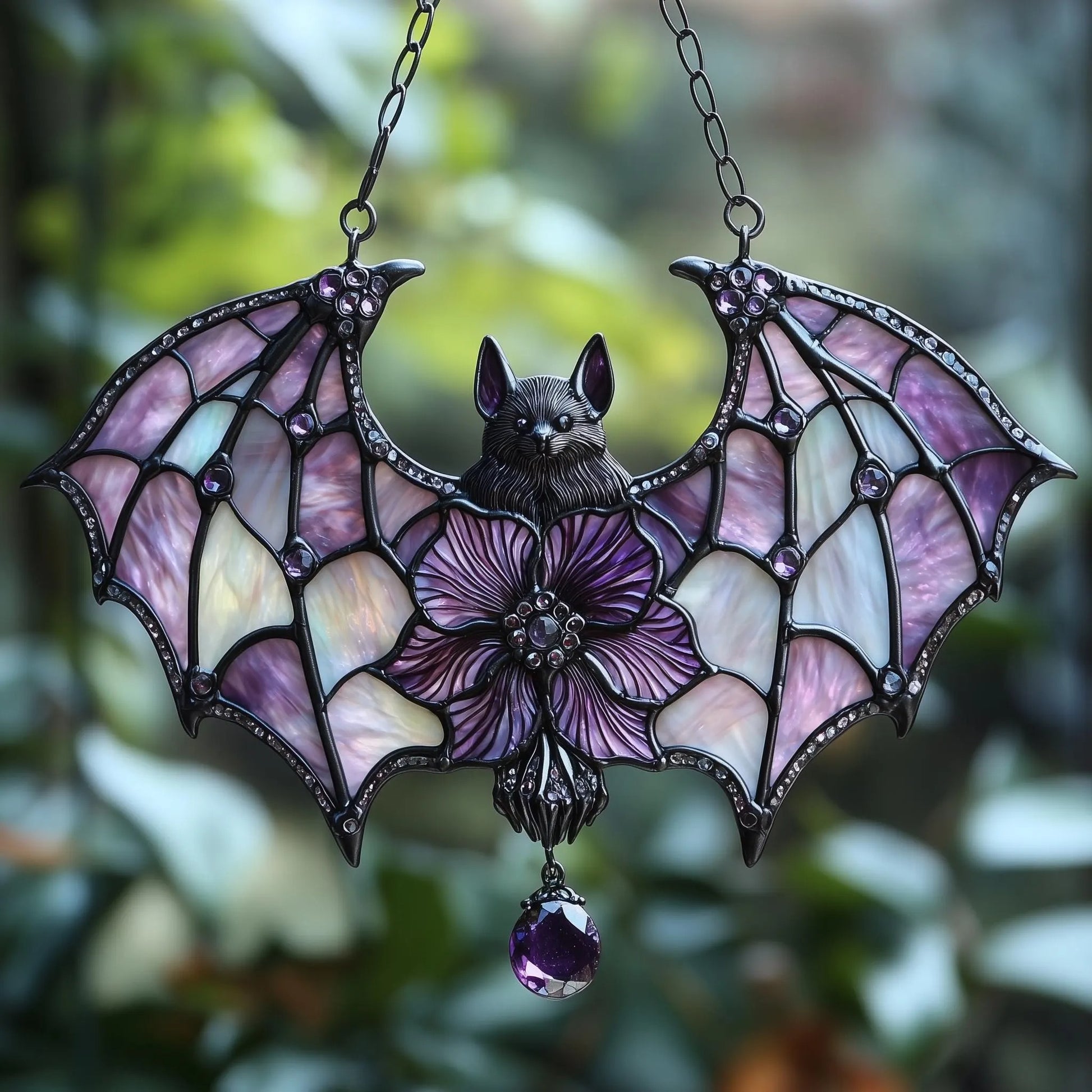 Purple Floral Bat Acrylic Window, Acrylic Window Hanging