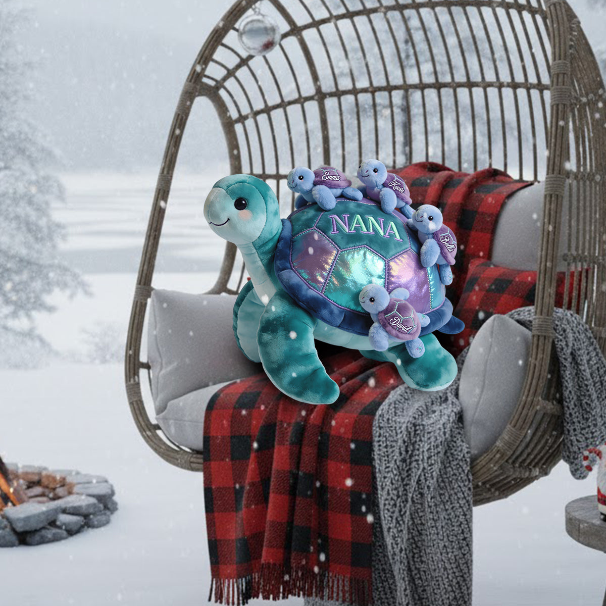 Turtle Gift For Mom Grandma - Personalized Grandma Faux Fur Shaped Pillow