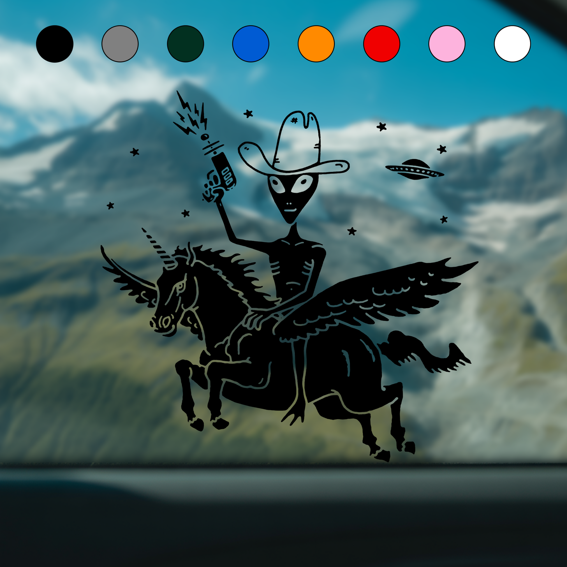 UFO Cowboy Alien on Unicorn Sticker